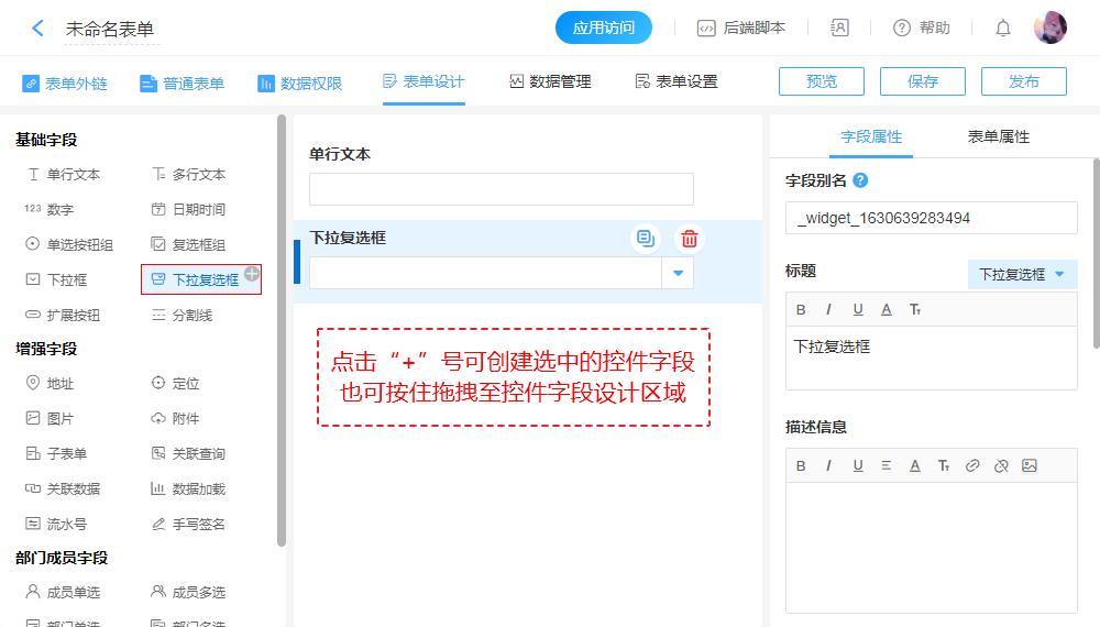 | 创建字段、表单预览 |