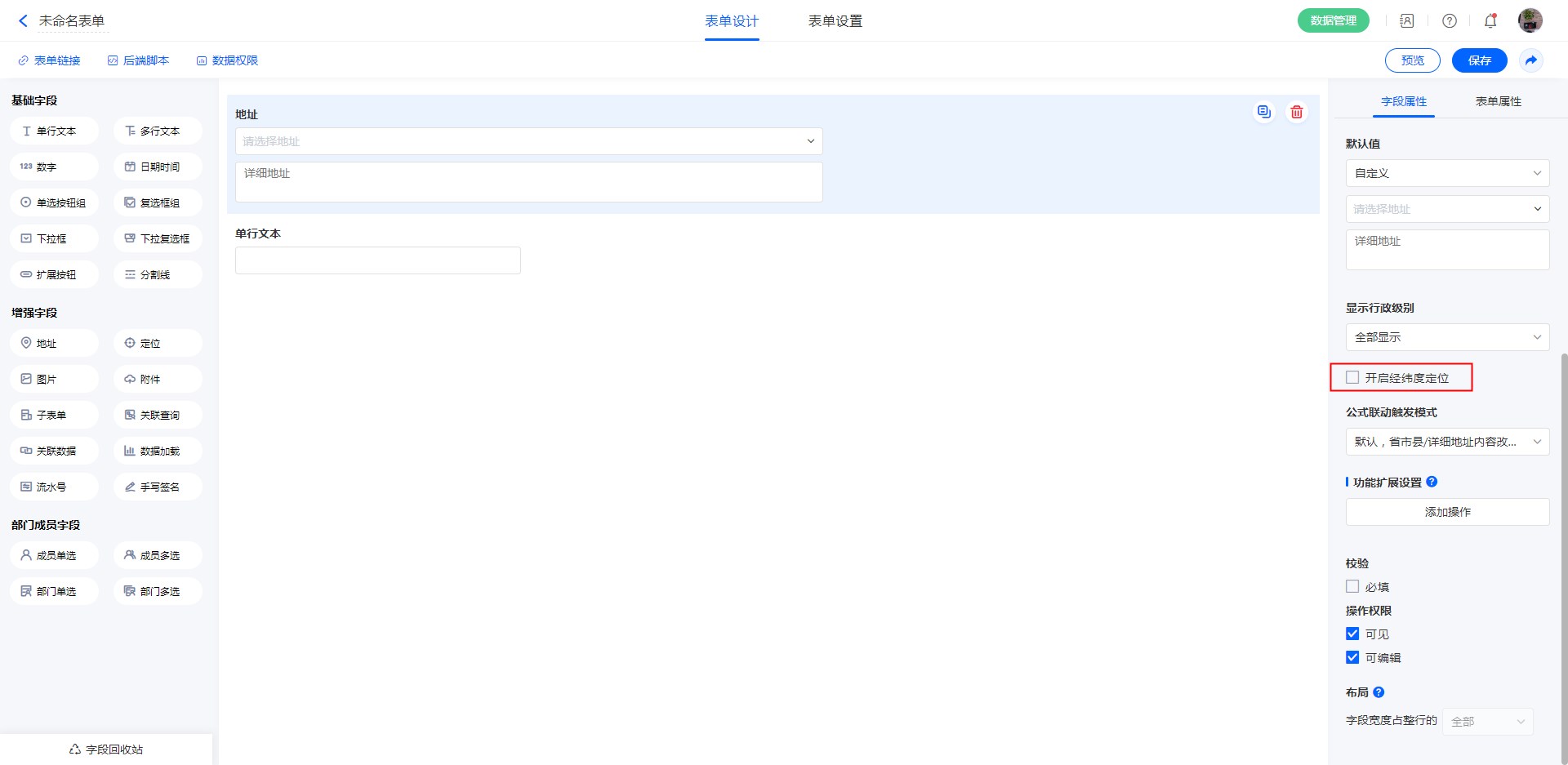 | 设置入口:表单设计-地址字段-【开启经纬度定位】 |