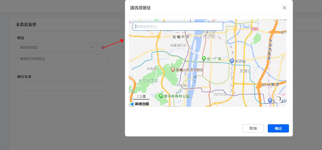 地址控件支持手动输入地址、选择地址输入两种方式。