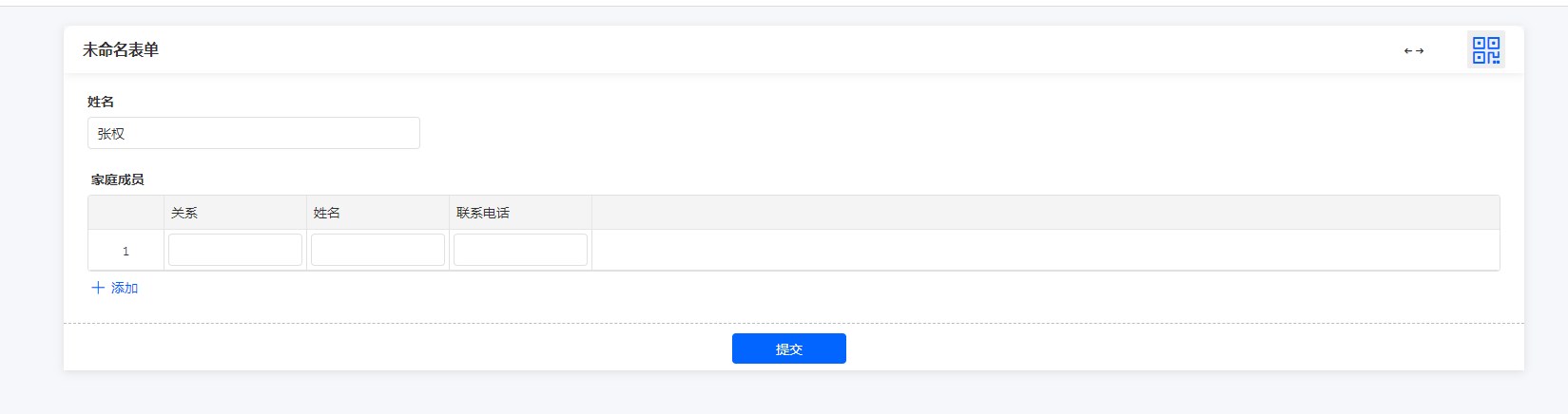 - 例如通过上图中的外链扩展姓名:张权,来录入一条数据。姓名无需填写。