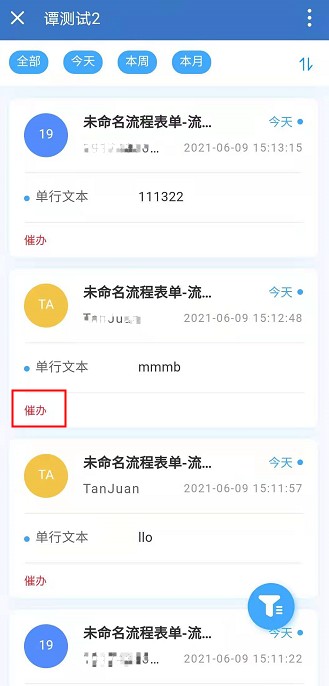 设置了以后,流程发起人即可在访问应用时在「我发起的」流程里找到需要催办的流程进行催办提醒。