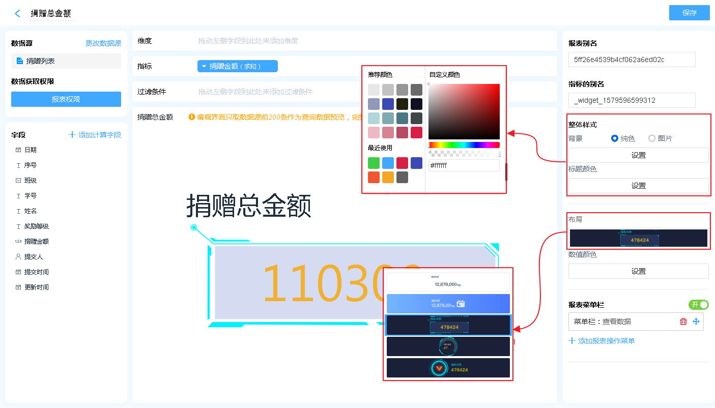 报表控件的整体风格,主要设置背景颜色/图片、标题颜色