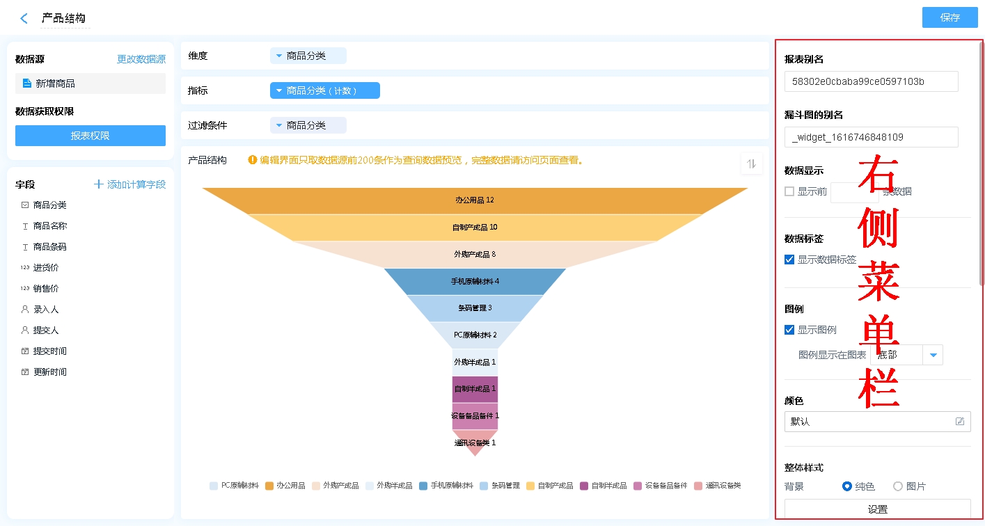 漏斗图的右侧菜单主要用来对漏斗图进行各种设置。