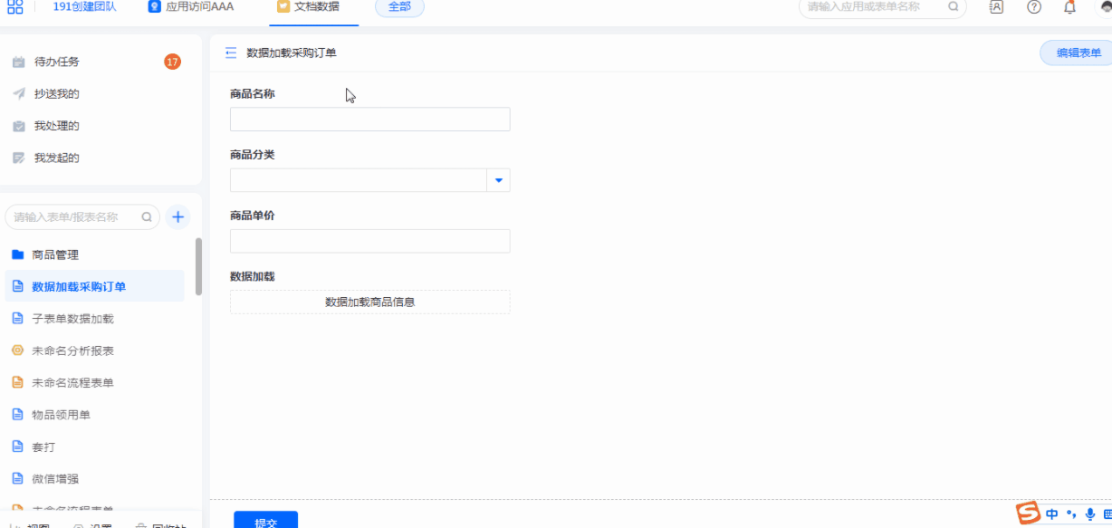 - 弹出表单 点击对应菜单按钮后,在当前报表页面 弹出一个新的页面,在此页面加载指定表单的内容。