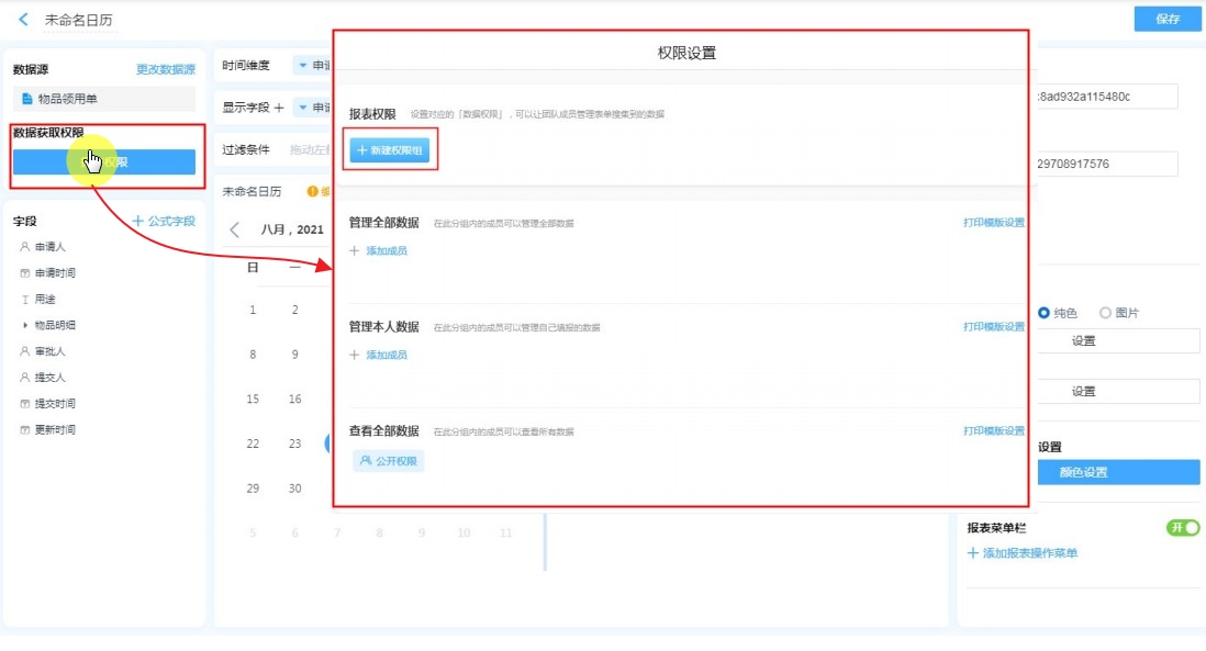 注意:权限设置完成后,还需在报表设计页面和报表编辑页面点击保存。