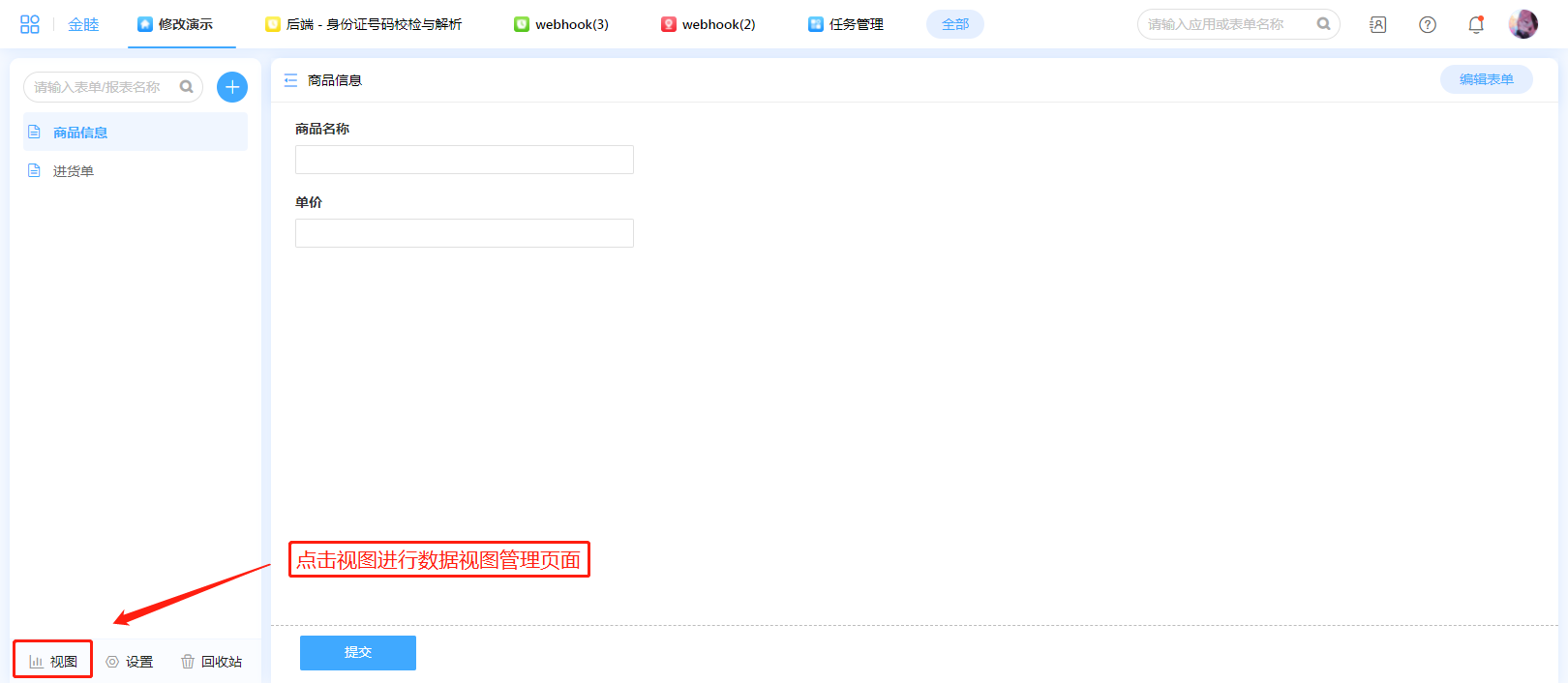 | ② | 编辑视图 | 打开视图设计界面。 |